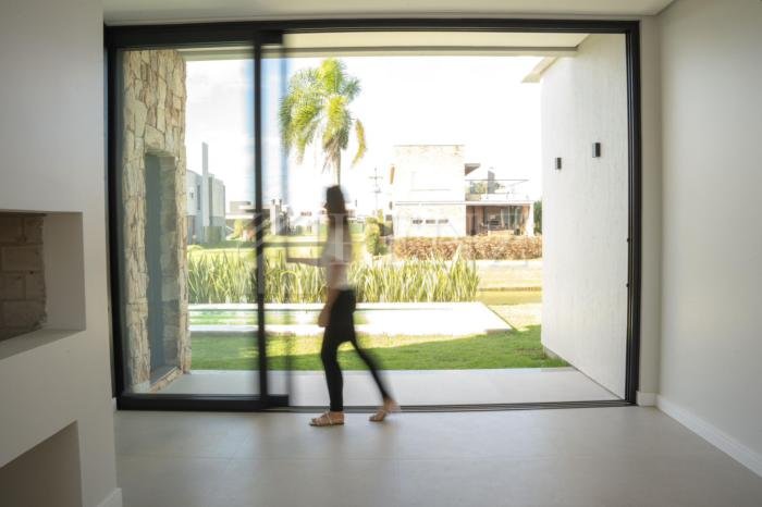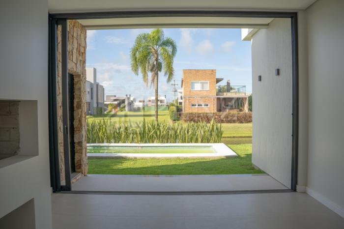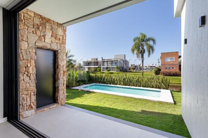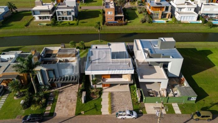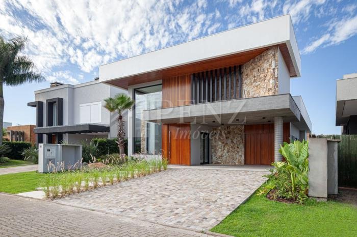 Penz Imóveis vende casa nova moderna, 3 suítes, sendo a suíte master com vista para o lago, esquadrias em pvc, persianas automatizadas e tela mosquiteiro, sala com pé direito duplo, garagem 2mcarros com depósito fechado, lavabo social externo, área de serviço, porcelanato, lareira e churrasqueira, piscina com piso térmico, jardim com paisagismo, irrigação, fachada com revestimento em pedra madeira, concreto aparente e painéis ripados em madeira nobre. 51 985363072, A imobiliária Penz fica na rua José Antonio Picoral, 80. em frente a prefeitura de Torres RS.