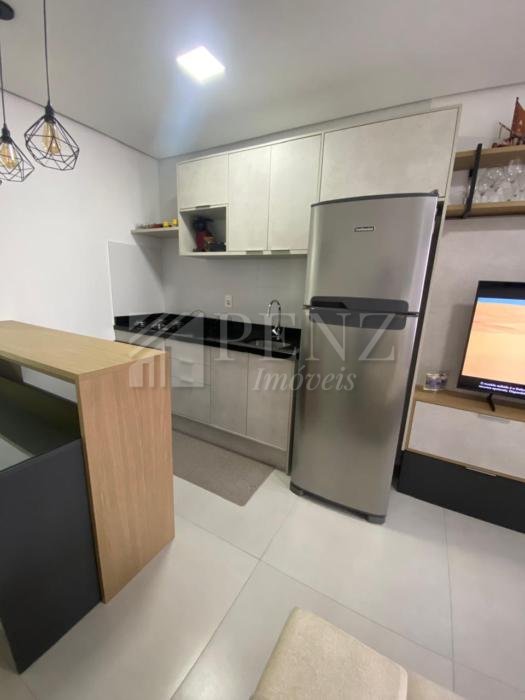 Penz Imóveis vende apartamento mobiliado de um dormitório, banheiro social, cozinha/área de serviço, estar/living, terraço, garagem.